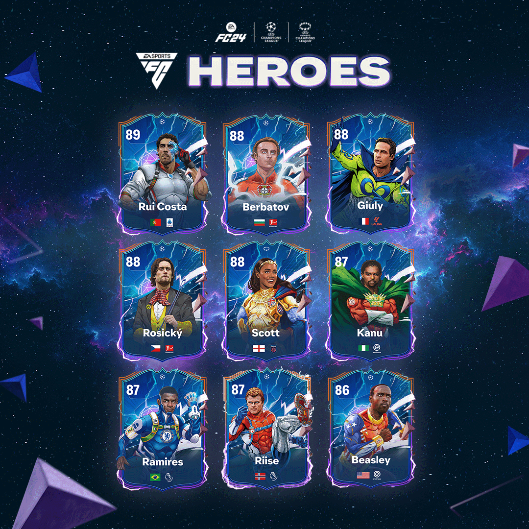 “As ilustrações dos jogadores criadas pela Marvel são fantásticas e incorporam lindamente os esforços heroicos em campo destas lendas do futebol que jogaram nas competições de clubes da UEFA – agora reimaginadas no EA SPORTS FC 24”, disse David Jackson, VP Brand, EA SPORTS FC. “A nossa colaboração contínua com a Marvel Entertainment é construída com base na criatividade, inovação e inclusão, e estamos entusiasmados em representar os Heróis Ultimate Team masculino e feminino no jogo.”