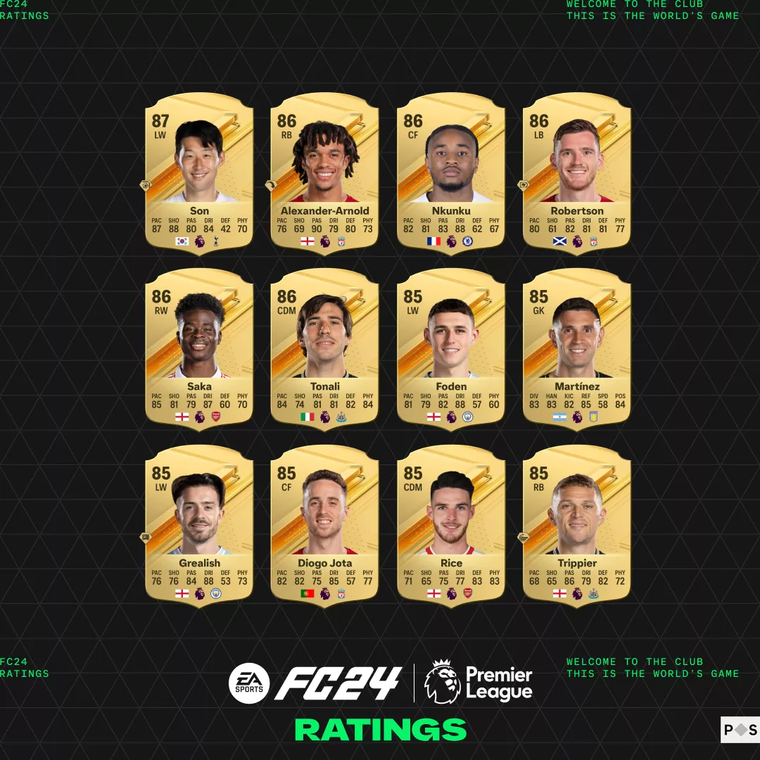Os especialistas falaram, o debate continua! Hoje, a EA SPORTS revelou os melhores Ratings dos jogadores da Premier League, e apresenta este primeiro momento do conjunto abrangente de talentos e estatísticas globais das estrelas do futebol no EA SPORTS™ FC™ 24.