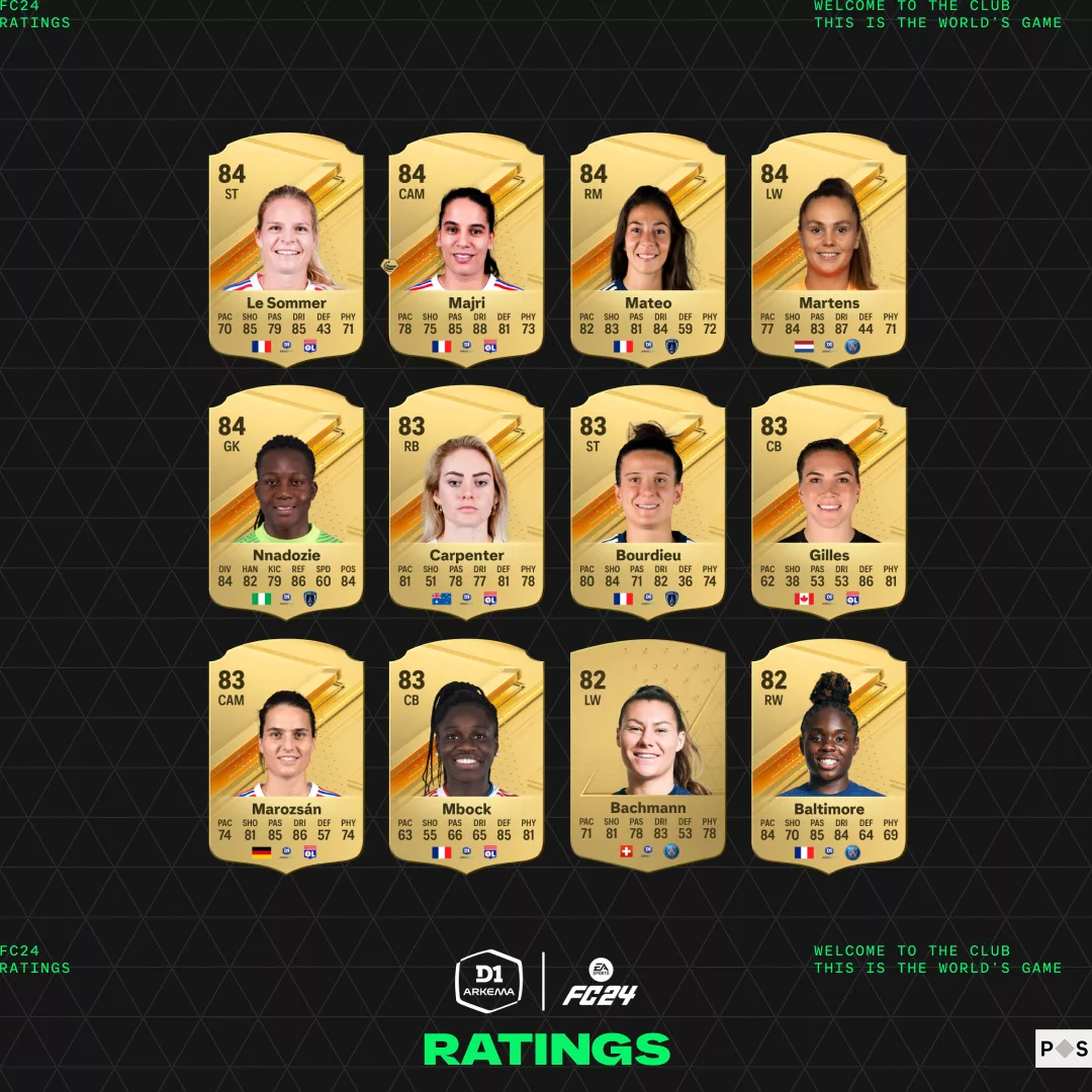 Hoje, a EA SPORTS revelou os melhores Ratings das jogadoras da D1 Arkema e apresenta este primeiro momento do conjunto abrangente de talentos e estatísticas globais das estrelas no EA SPORTS™ FC™ 24.