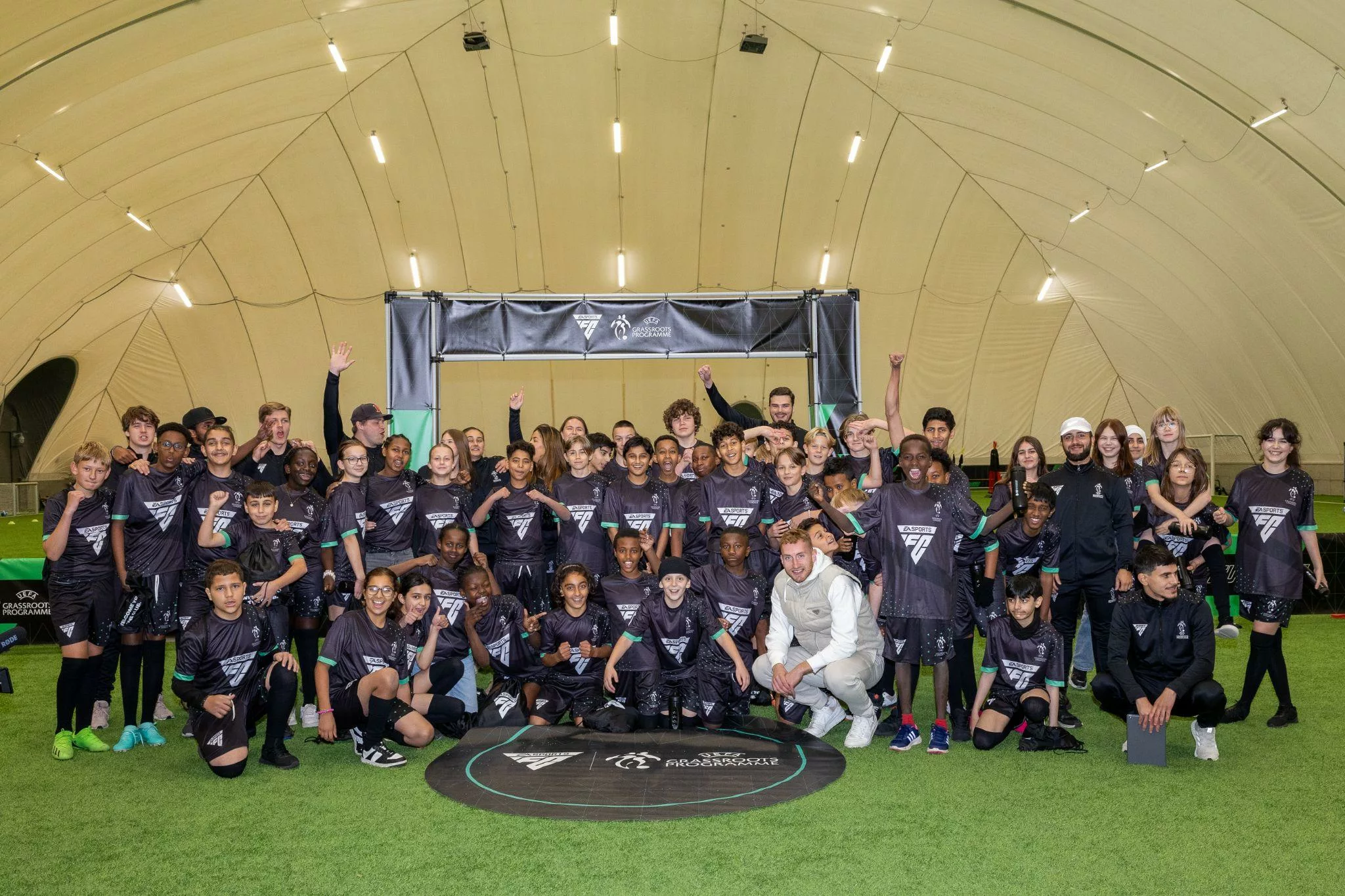 O evento contou com a presença de Dejan Kulusevski, do Tottenham Hotspur, presente para participar em sessões de treino com crianças locais