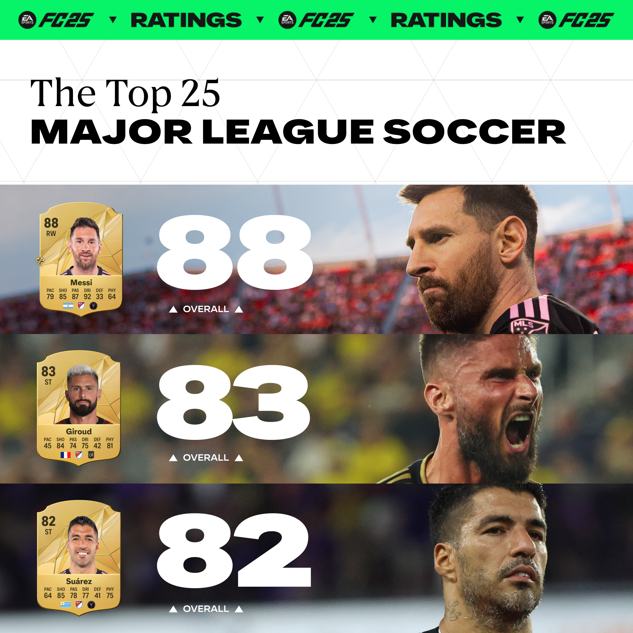 Os especialistas falaram, e o debate continua! Hoje, a EA SPORTS revelou os melhores ratings dos jogadores da MLS,E os melhores ratings das jogadoras da NWSL, apresentando um primeiro olhar para o conjunto abrangente de talentos [repleto de estrelas globais] e estatísticas no EA SPORTS FC™ 25.