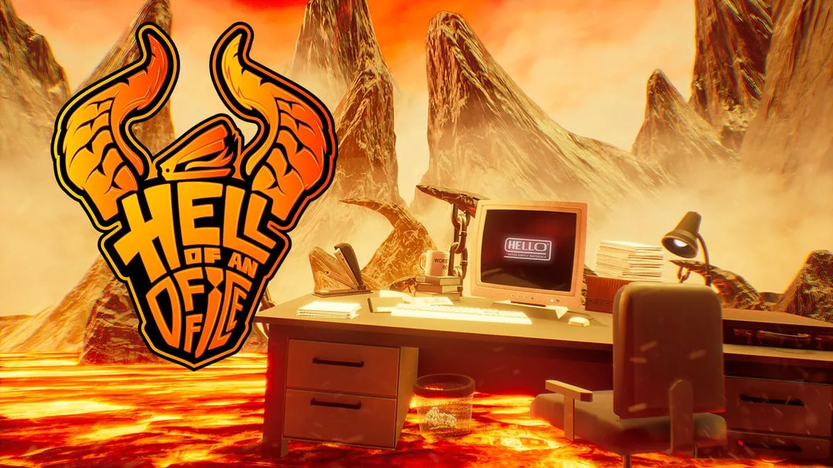 O ambiente de Hell of an Office é, no mínimo, peculiar e memorável. O jogador começa no nível -666, numa espécie de elevador suspeito, onde é recebido por uma figura misteriosa chamada Sr. Stapley. Este personagem apresenta-se como supervisor e informa que acabámos de iniciar o nosso primeiro dia na “maior e melhor corporação da Terra”. No entanto, não demora muito até percebermos que estamos numa versão infernal de um escritório, rodeados por lava, fogo e cenários que tornam cada nível uma experiência única e visualmente marcante.