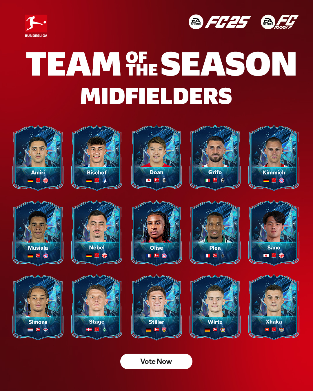 Já começou a votação para a FC 25 Bundesliga Team Of The Season [TOTS], que celebra os melhores jogadores da época 2024/2025.