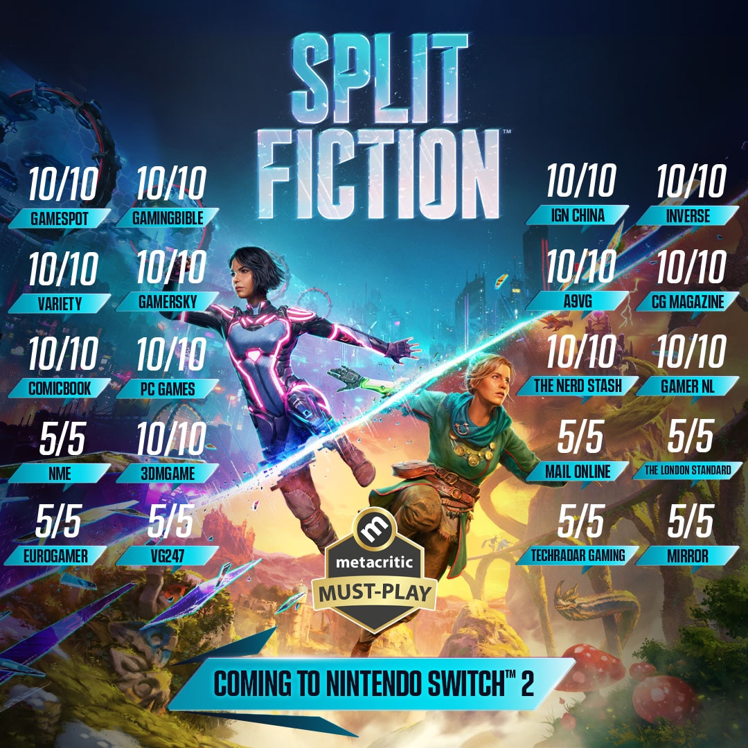 A Nintendo anunciou que o aclamado videojogo cooperativo do estúdio Hazelight, Split Fiction, está a chegar à Nintendo Switch 2 como título de lançamento!