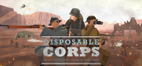 Apesar de não ter uma narrativa tradicional, Disposable Corps insere-se num cenário inspirado pela Primeira Guerra Mundial, com confrontos entre forças britânicas, francesas e alemãs. Este pano de fundo é usado de forma estilizada, mais como ambiente do que como reconstituição histórica rigorosa. O jogo brinca com a ideia de soldados descartáveis — como o próprio nome indica — e apresenta o conflito através de uma lente quase satírica. A ausência de uma história propriamente dita não é um problema aqui. O foco está no gameplay e na forma como as mecânicas interagem com o ambiente. O campo de batalha é uma caricatura das trincheiras da Grande Guerra, onde as estratégias dos jogadores se desenrolam com uma liberdade pouco comum. Pequenos detalhes, como a possibilidade de escavar trincheiras gratuitamente (desde que se tenha uma pá comprada) ou a presença de tanques com pernas (verdadeiros mechs improvisados), dão um toque absurdo mas coerente ao mundo do jogo.