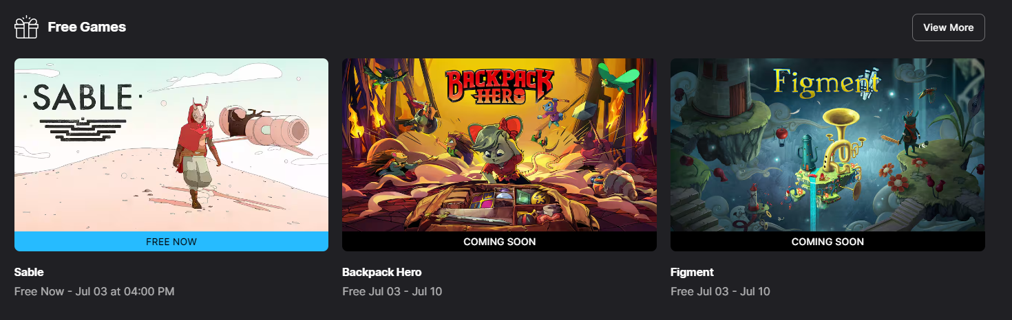 Não te esqueças de adicionar Sable à tua biblioteca até dia 3 de julho às 16h00. E como sempre, os jogos tornam-se teus para sempre uma vez reclamados. Fica atento para mais surpresas semanais da Epic!