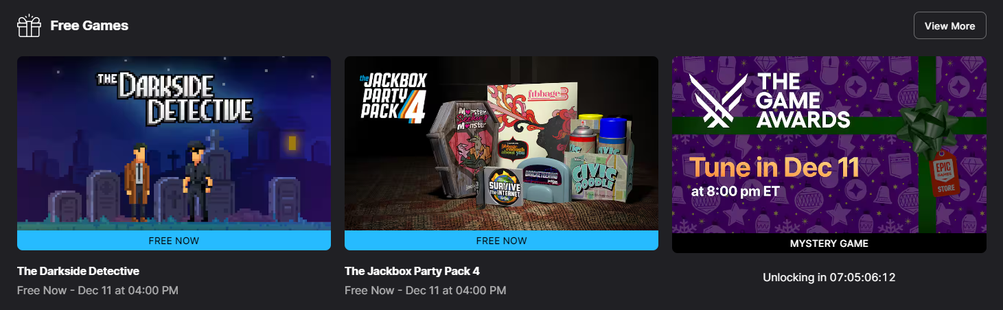 A Epic está também a promover um jogo mistério que será desbloqueado dentro de poucos dias, alinhado com a data dos The Game Awards, no dia 11 de dezembro. Como tem acontecido em anos anteriores, é provável que esta oferta marque o início das tradicionais promoções de Natal, muitas vezes acompanhadas de jogos gratuitos diários.